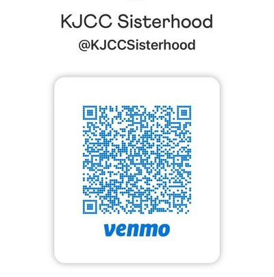 Payments can be made directly to the KJCC Sisterhood for Oneg & Dinner Sponsorships, Events, Gift Shop Items, and General Donations via Venmo. To make a payment, you can scan the QR code shown here or find @KJCCSisterhood directly in your Venmo App.